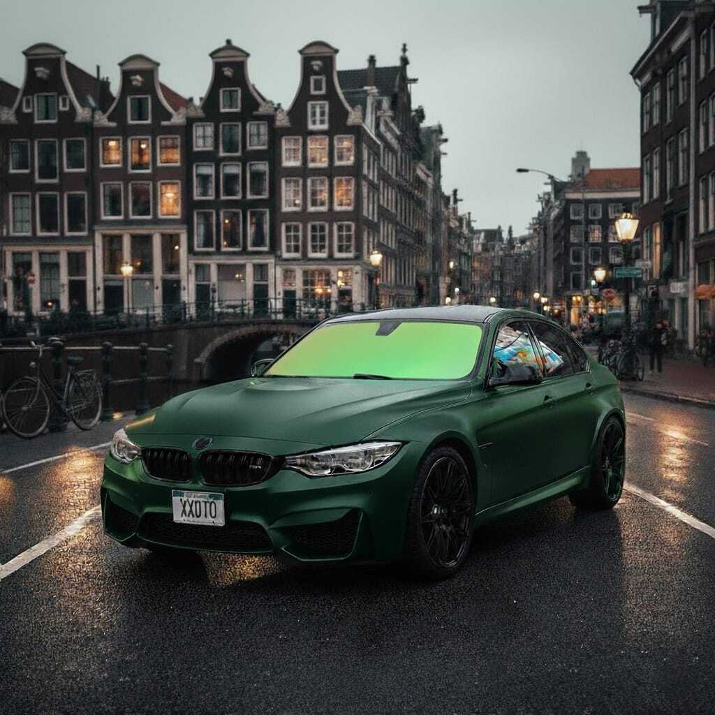 Premium chameleon raamfolie in luxe groen tint met 65% warmte- en UV-reductie. Ideaal voor auto’s, panoramadaken en windshields.